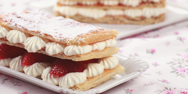 El milhojas es una receta clásica, muy típica de las celebraciones de cuando éramos pequeños. Recuerdo ir con mi abuelo a la pastelería y que hubiera un montón de estos postres expuestos en las vitrinas. Hay dos versiones principales de milhojas: de crema o nata. Es una receta muy fácil y rápida, pues vamos a…