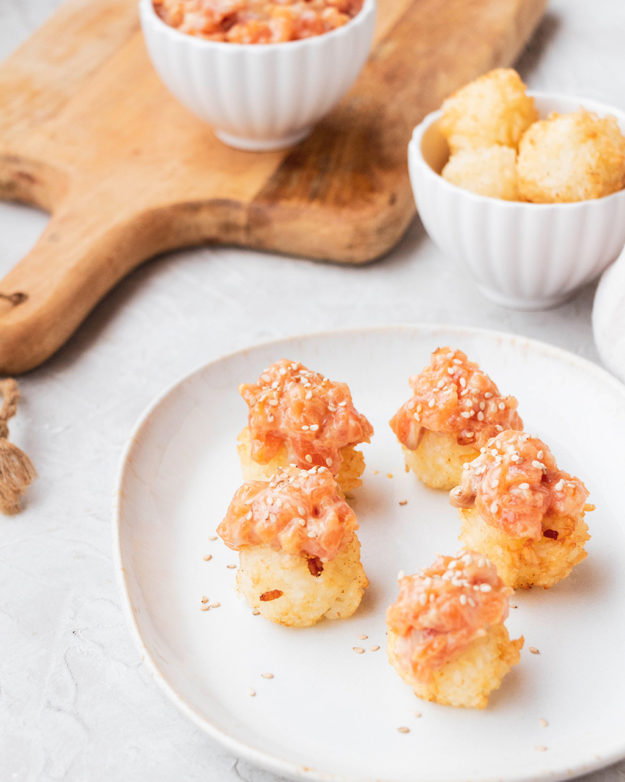 Hoy preparamos unas bolitas de arroz al estilo sushi, que freiremos para darle un toque crujiente. Y lo acompañaremos de un tratar de salmón marinado increíble. Es un plato delicado, aromático, lleno de texturas y completamente adictivo. Sin duda, tenéis que probarlo. Perfecto para acompañar una comida modo japo, como aperitivo o como acompañante de…