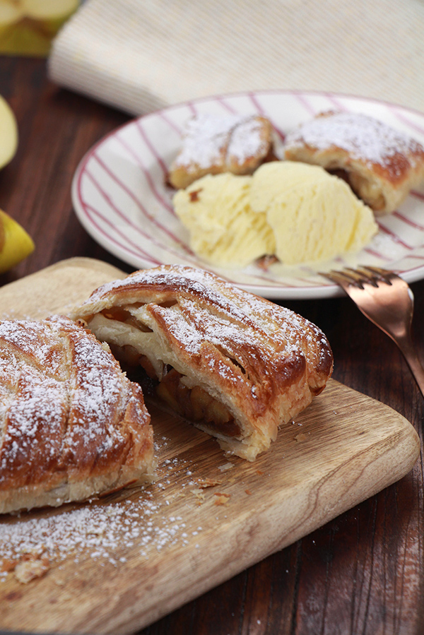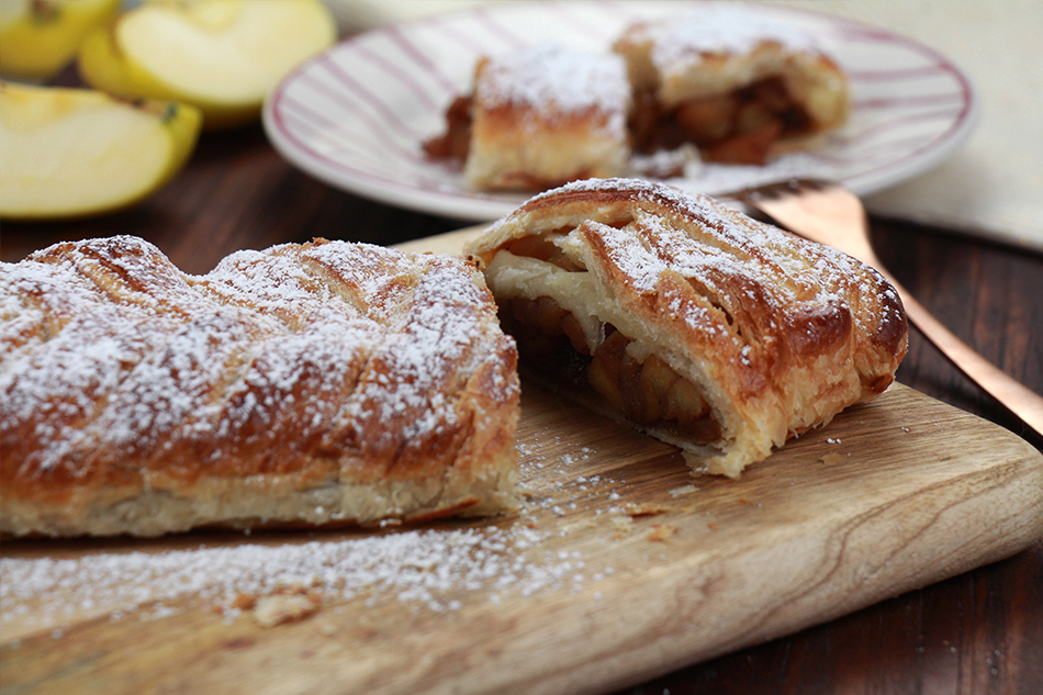 El Apfelstrudel o Appelstrudel es una tarta de hojaldre y manzana muy versátil, que puede comerse fría o recién salida del horno con una crema o helado. Un contraste brutal. Si compráis el hojaldre como en mi casa, veréis como es una receta muy fácil y poco laboriosa, lo que más tardará es la cocción de las manzanas, ¡que lo hace el fuego!