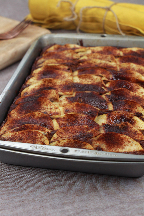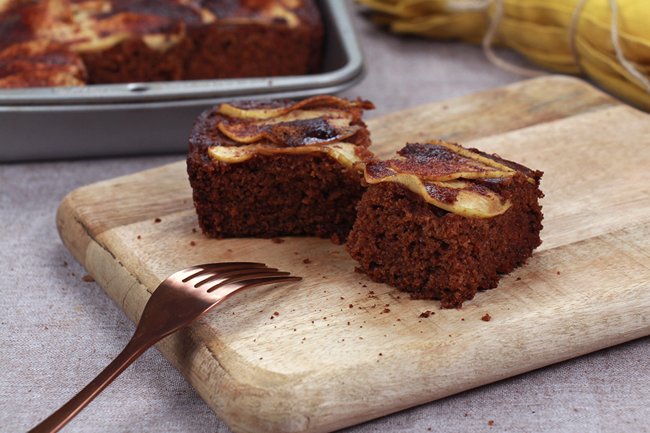 ¡Que el título no os confunda! No se trata de una tarta de manzana clásica, para la que también podéis encontrar la receta en el blog, si no que se trata más bien de un bizcocho esponjoso y muy especiado, con un sabor intenso delicioso, cubierto de una fina capa de manzanas laminadas espolvoreadas de canela, jengibre y panela. ¡Ufff, qué ricura!