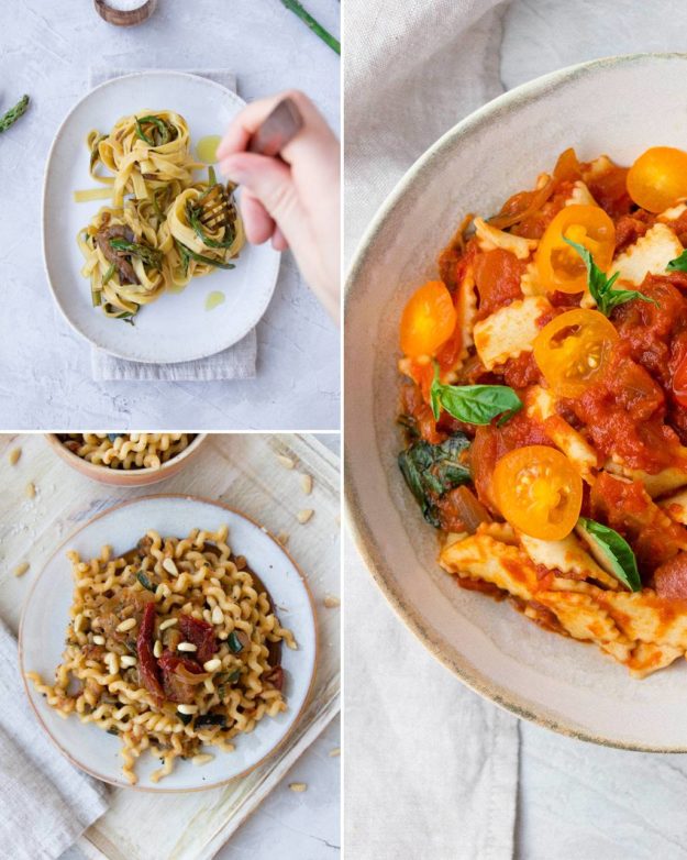 Sabéis que no me puedo resistir un plato de pasta, especialmente si tienen un montón de verduras, en cualquiera de sus formas (crudas, en sofrito, a la plancha, en pesto, salsa…). Además, las verduras de verano son muy top y aportan sabores ideales a las pastas. Hoy os traigo un post muy completo con 3…