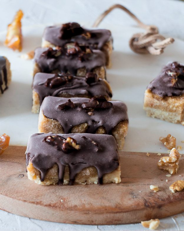 ¡Un capricho sorprendentemente saludable! Así son estas barritas heladas saludables, ideales para los días calurosos que ya empiezan a decirnos hola. Estas barritas saludables o «caramel» chocolate bars, son sin gluten, sin azúcares refinados y muy fáciles de preparar. La base está hecha con una mezcla de frutos secos, que combina a las mil maravillas…