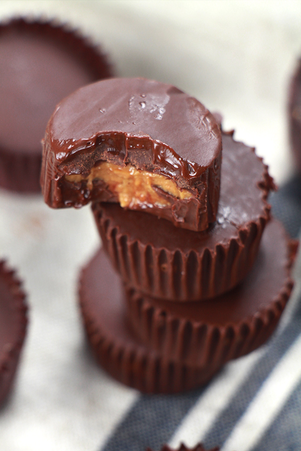 Estos mini bombones de chocolate rellenos de crema de cacahuete son una receta súper fácil y baja en carbohidratos, ideal para un caprichito dulce sin muchas calorías y sabroso. Son unas mini delicias muy típicas en Estados Unidos, hace poco viajé a California y los vendían en todas partes. Si nunca habéis probado los Reese’s os…