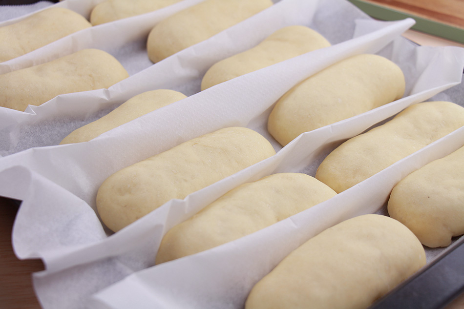 Preparamos la bandeja, en la que pondremos papel de horno pero haciendo unas ondas, así cuando leven los Bollicaos lo harán hacia arriba. Los dejaremos así levando hasta que doblen su tamaño. Dependerá de la temperatura ambiente, pero será alrededor de 1 hora.