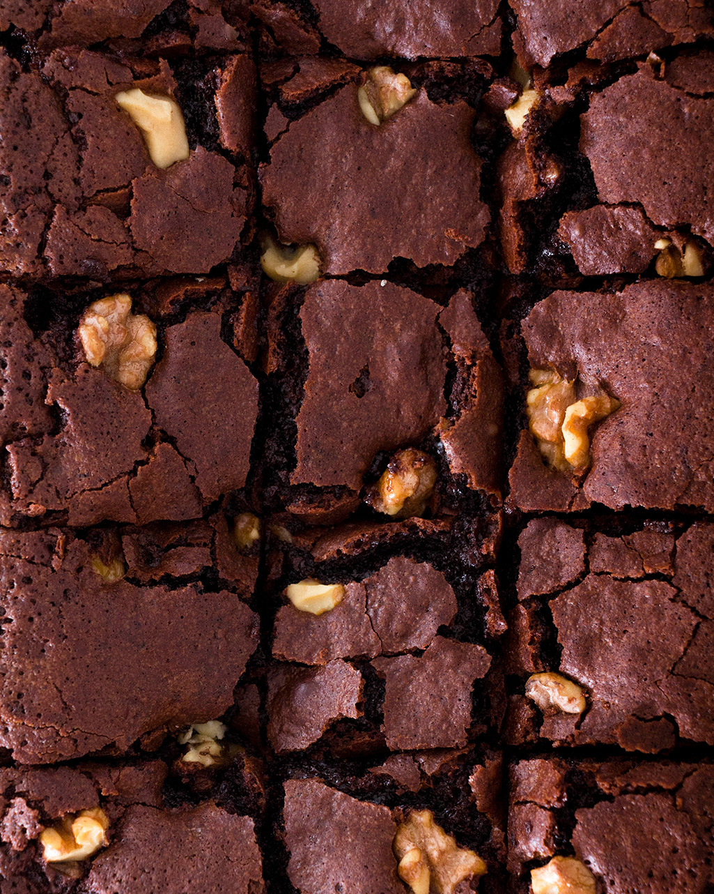 Lo llevamos al horno, a media altura, con calor por arriba y por abajo unos 25 min. Para saber si está, os recomiendo que pinchéis con un palito y mováis el molde. Aunque salga algo «sucio», si movéis el molde y veis el bizcocho consistente ya lo podéis sacar. El brownie tiene la característica de estar algo crujiente por fuera pero jugoso por dentro y dejándolo ligeramente crudo es como se conseguirá esa textura. Al enfriar, el chocolate se endurece un poco, por lo que si lo cocinamos de más nos quedará muy seco.
