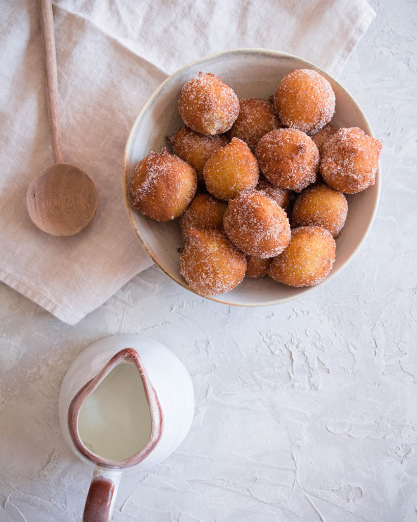 La receta de buñuelos es muy sencilla, pues simplemente se trata de una masa de harina, huevos, leche y azúcar que se fríe en abundante aceite. A veces pueden ir rellenos de nata o crema, como os enseño en este post. El origen de los buñuelos es incierto. Se cree que es una preparación muy antigua de la comida mediterránea y por eso tienen mucha tradición. Hay quien piensa que los buñuelos derivan de la palabra “puñuelo”, una especie de bola que los romanos amasaban con sus puños, pero también se cree que la palabra proviene del francés “beignet”, que es un dulce que se elabora mojando una fruta o una verdura en una masa bastante líquida y friéndola en aceite. Se conoce que en España se encuentran recetas de buñuelos desde el siglo XVI y por eso también se dice que eran uno de los postres favoritos de los árabes que estaban aposentados en Granada, que según los registros se cree que era una masa que se freía en aceite y posteriormente se bañaba en miel hirviendo. ¿No os encanta cuando una comida tiene tanta historia? En cualquier caso, hoy en día es una receta que ha ido evolucionando y ahora cada territorio incorpora sus propios ingredientes y su propia tradición. Uno de los buñuelos más conocidos es el buñuelo de viento o bunyol de vent, tradicional de Cataluña y que se consume sobre todo durante la Cuaresma.