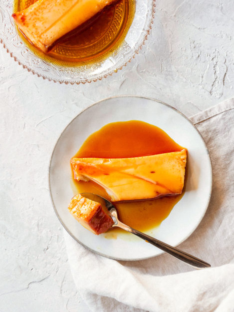 La crema volteada es la versión peruana del flan español. Para ver mi receta tradicional de flan, no os perdáis este post con todos los detalles, ya veréis lo sencillo que es de preparar. Nuestro flan se hace con huevos, leche entera y azúcar, además del caramelo, pero la receta de crema volteada utiliza leche…