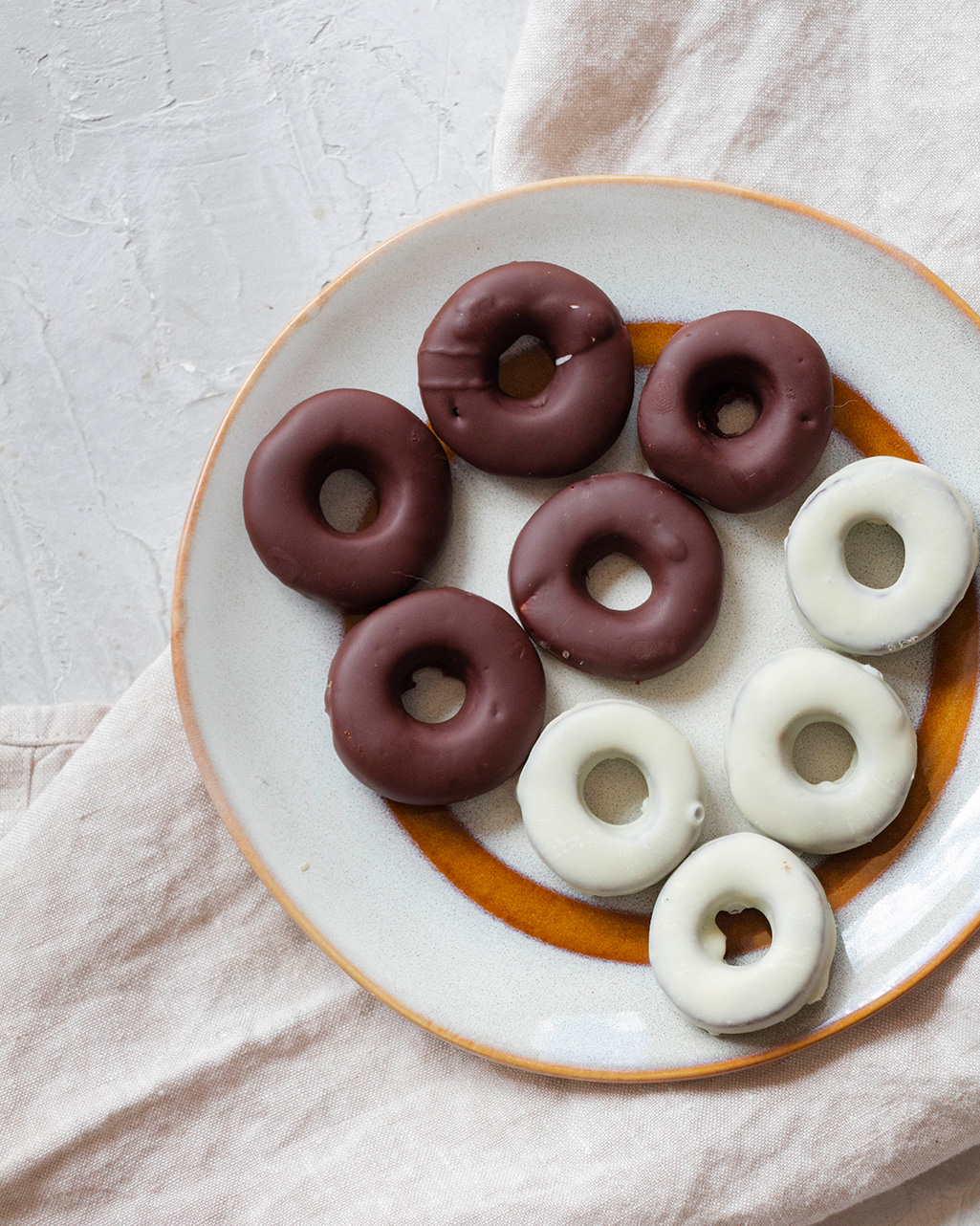 - Cobertura blanca: 80 gr choco blanco (sin azúcar) + 1/2 cdita aceite de coco