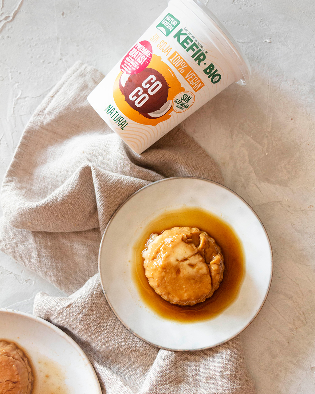 Habitualmente los flanes se preparan con leche o bebida vegetal, pero en esta receta voy a introduciros a los Biogurts de Natur Green, la alternativa de origen vegetal al yogur y al kefir: 100% veganos, sin soja y sin azúcares añadidos, incluso con versiones directamente sin azúcar (sabor almendra y anacardo). Si queréis cotillear un poco más, os dejo por aquí los stories que os hice del unboxing.