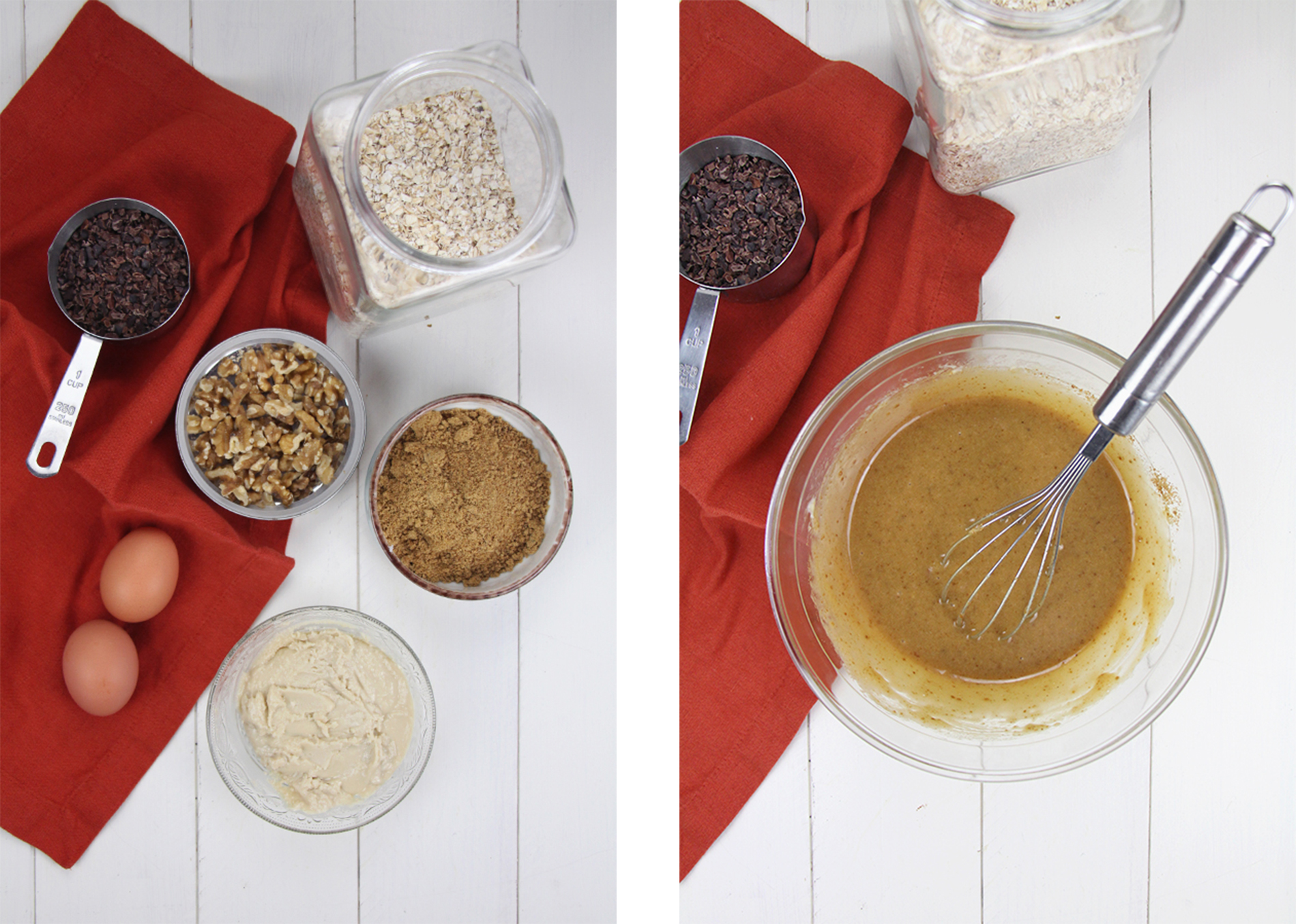 Es aquí donde entran estas galletas, hechas con harina integral de avena (y también podríamos hacerlas con harina de arroz o espelta), sin azúcares refinados y usando nibs de cacao potentes en antioxidantes y magnesio. La harina integral, o cualquier harina no refinada, siempre es más saludable que las harinas blancas porque la fibra que lleva no solo sirve para el tránsito intestinal, sino que ayuda a ralentizar la absorción de los almidones. El uso de copos de avena enteros ayuda a reducir el colesterol gracias a los aminoácidos esenciales, la fibra y los ácidos omega 3. En esta receta también evitamos el uso de grasa animal, como la mantequilla, y la sustituimos por una de frutos secos y, además, casera. Y para los que no conozcáis las nibs de cacao, son pequeños pedacitos de la semilla del cacao natural tostado y son muy nutritivos y saludables. Un superalimento con todo el aroma del cacao, crujientes y con un intenso sabor a chocolate puro, ligeramente amargo.