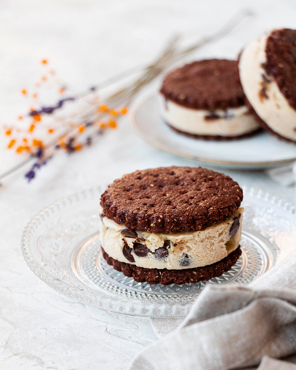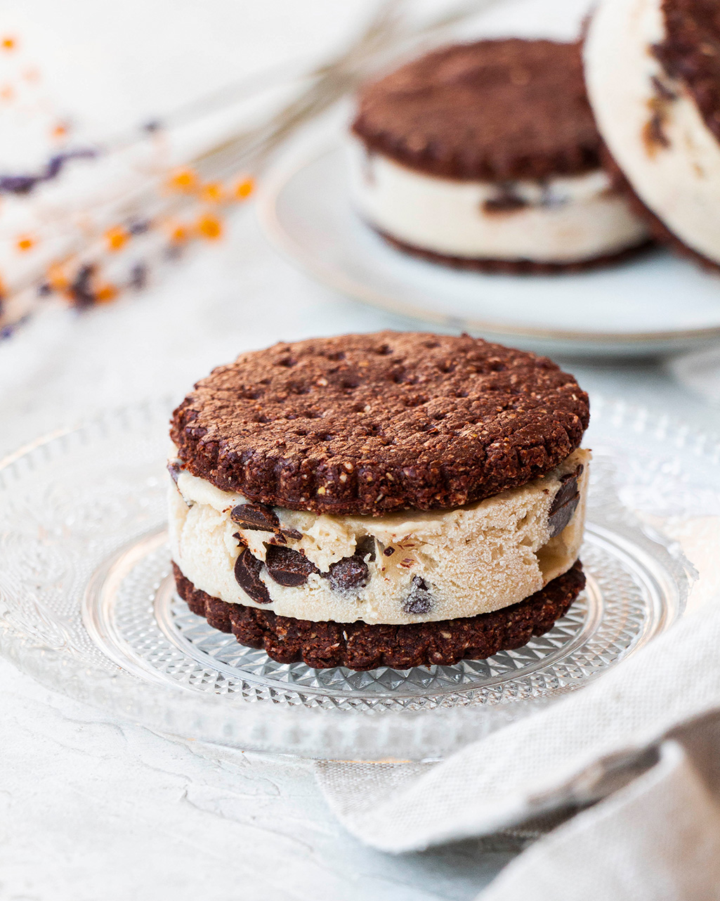 ¿Quién no se ha comido alguna vez el clásico sándwich helado de stracciatella? Dos capas de galleta con un interior cremoso, un bocado que disfrutan tanto grandes como pequeños. ¿Y por qué no hacerlo casero y en una versión más saludable? Pues aquí vengo yo con una receta que os va a encantar y en la que os doy opciones para que la hagáis vuestra. He intentado capturar el sabor con la cámara, así que espero traspasar las pantallas y que os animéis a poneros manos la masa, la verdad es que están buenísimas!