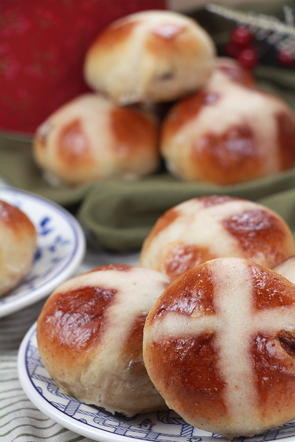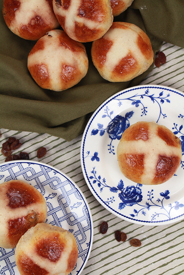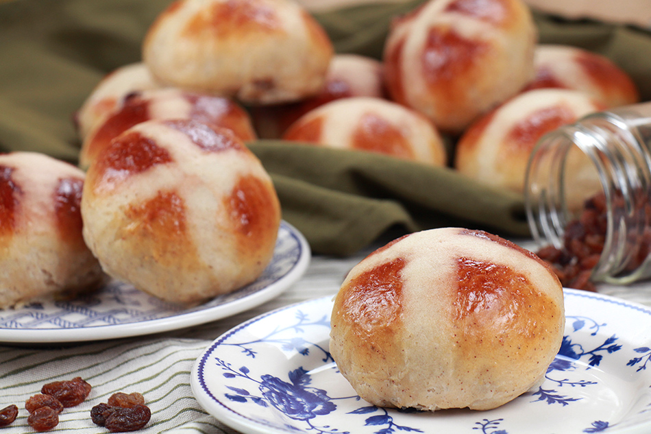 Hoy os traigo una receta típicamente inglesa perfecta para esta época del año y la festividad de Semana Santa. Los Hot cross buns, son una especie de bollos muy especiados y que tradicionalmente se preparan para el Viernes Santo, de ahí el nombre «Bollos de la cruz», con un relleno de pasas. Lo más característico es la cruz de su superficie, como símbolo de la crucifixión, que puede hacerse con harina y agua (como veremos en esta receta), pero también con papel de arroz, con glaseado, con cortes,…