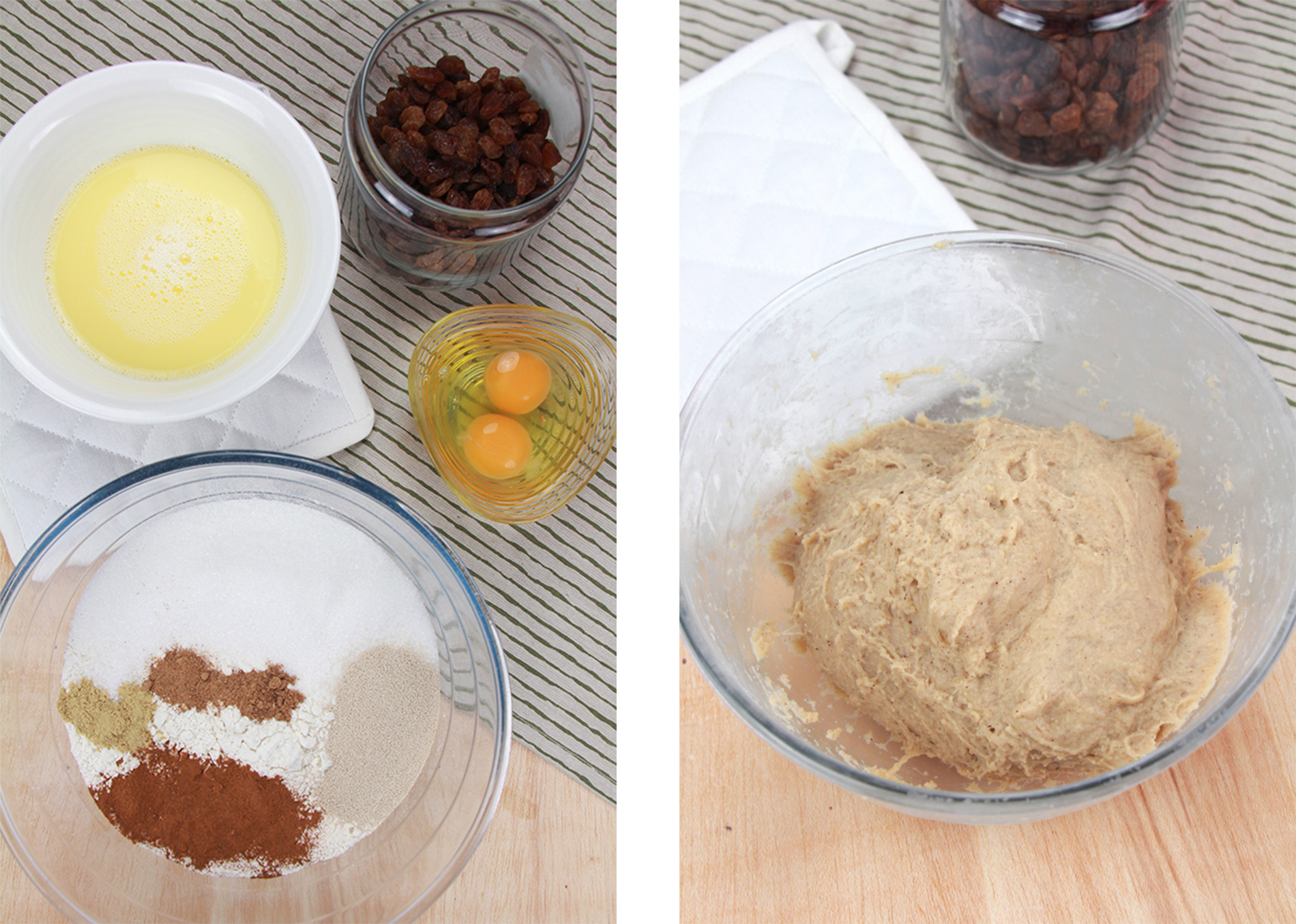 Son muy fáciles de preparar y los ingredientes los encontramos con facilidad en nuestras alacenas o cocinas. Esta es una de esas recetas que llenan la cocina de aromas gracias a la combinación de especies y las pasas del relleno (u otros tropezones que s ele quiera echar). Lo único que sí habrá que tener en consideración son los tiempos de levado, por lo que os recomiendo o prepararlos a primera hora de la mañana para tenerlos a la hora de la merienda u hornearlos por la noche para desayunarlos a la mañana siguiente.