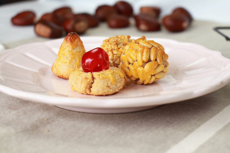 Los panellets se usaban como comida bendecida para compartir después de las celebraciones religiosas y con toda probabilidad se trate de una receta de origen árabe, dada su composición a base de almendras. Es un alimento rico en calorías, igual que las castañas y los boniatos, algo muy típico para el Día de Todos los Santos y el Día de Difuntos, cuando tradicionalmente gran parte de la población guardaba vigilia. Actualmente los panellets se han convertido en un producto de gran consumo, aunque no han perdido su carácter puntual. Además, en mi caso como os decía antes, se trata de una costumbre muy familiar, pues nos juntamos todos para amasar, hacer bolas, pegar piñones y almendras y hornear. ¡Viva las tradiciones!