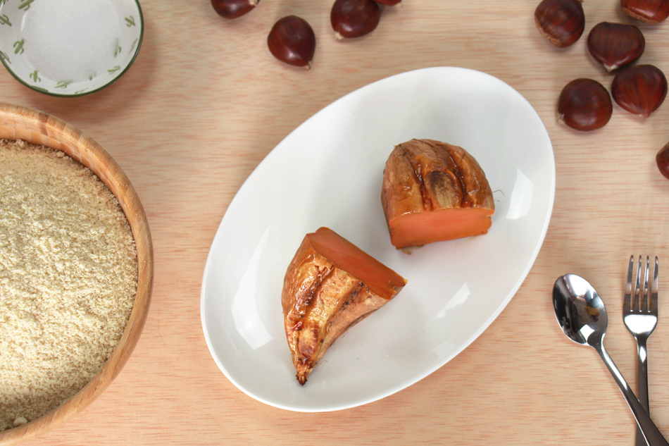 Cocinamos el boniato al horno, hasta que esté blando por dentro (puedes comprobarlo pinchándolo con un palillo). Una vez cocido, lo dejaremos enfriar.