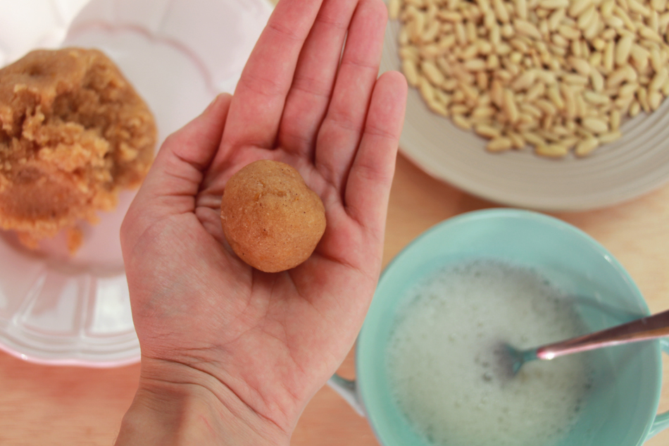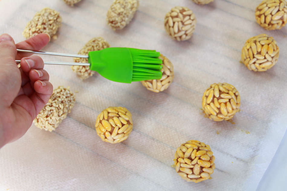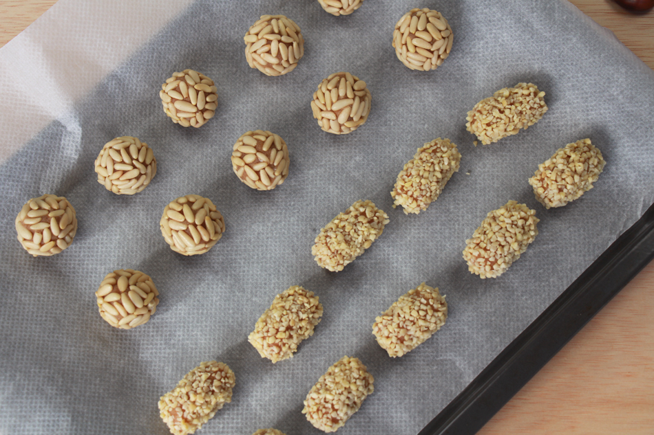 Otro tip que suelo utilizar es crear varias formas para que sean diferentes según el gusto y darles un toque divertido. Suelo hacer los de piñones redondos y los de almendra en rectangulitos (igualmente hago una bola y luego la alargo como si hiciera croquetas).