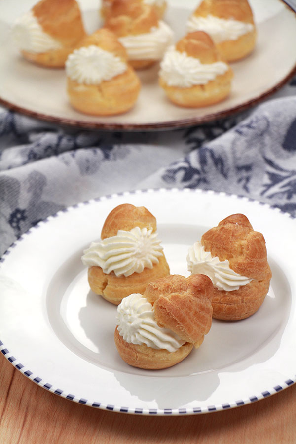 Los profiteroles son unos pequeños bocados dulces hechos con una masa que llamada pasta choux y que tiene la característica de quedarse hueca durante el horneado. Los profiteroles clásicos están rellenos de nata y rociados con chocolate, son un postre delicioso muy tradicional y que fácilmente puedes encontrar en restaurantes o celebraciones. Siempre había pensado que era una receta muy difícil y cuando me animé a prepararla me sorprendí de lo fáciles que son de hacer. Me recuerdan tanto a mi infancia, que cada bocado me sabía a recuerdos.