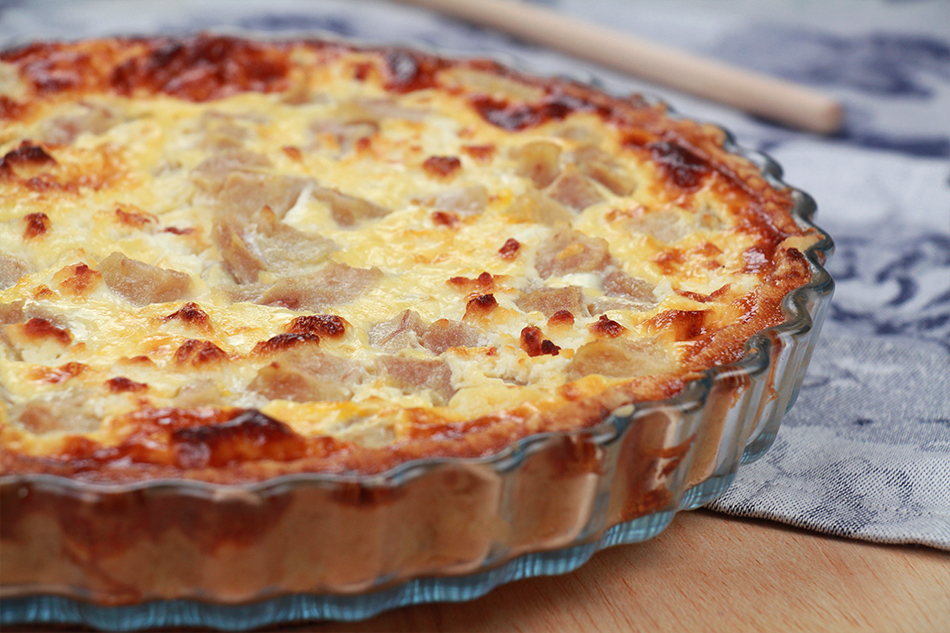 Este fin de semana tenía amigos en casa y quería sorprenderles con una cena variada diferente y, en vez de preparar una quiche clásica, me animé con esta tarta salada de peras y queso. ¡Me pareció una receta muy otoñal! La peras me transportan totalmente al otoño e incluso el color resultante de la quiche tras el horneado representaba al 100% esta época.