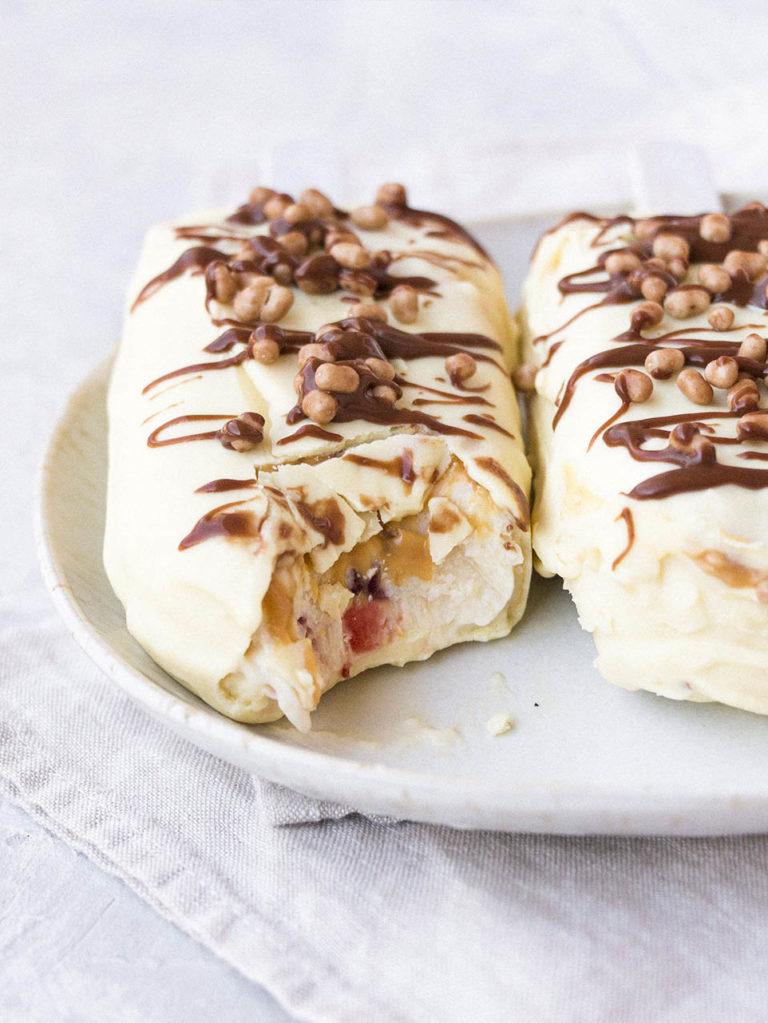 ¿Quién es capaz de resistirse a unos Magnum de chocolate blanco? ¿Y aún más cuando el relleno es un cremoso yogur natural, con una capa de crema de cacahuete saludable y un corazón de mermelada de fresa? Sí, lo sé, suena delicioso. Así de increíble es la receta de hoy de helado tipo Magnum casero.…