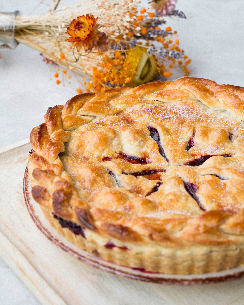 Es una receta sencilla pero que es perfecta para cualquier celebración o para sorprender a alguien. Como os decía, es una especie de masa quebrada o masa brisa casera muy fácil de preparar y con pocos ingredientes. Montaremos la tarta en formato pie: es decir, que se trata de una elaboración cuyo relleno queda en el interior y que se tapa antes de hornear. A la hora de presentarla, para darle un toque bonito, decidí hacer un borde trenzado con los recortes de la masa, pero podéis no hacerlo o decorarlo de cualquier otra manera. Podríais hacer unos rulos, unas formas superpuestas con algún cortador, simplemente doblar los bordes de la misma tarta y presionarlos con un tenedor (al estilo empanadilla),…. ¡dejad volar la imaginación!