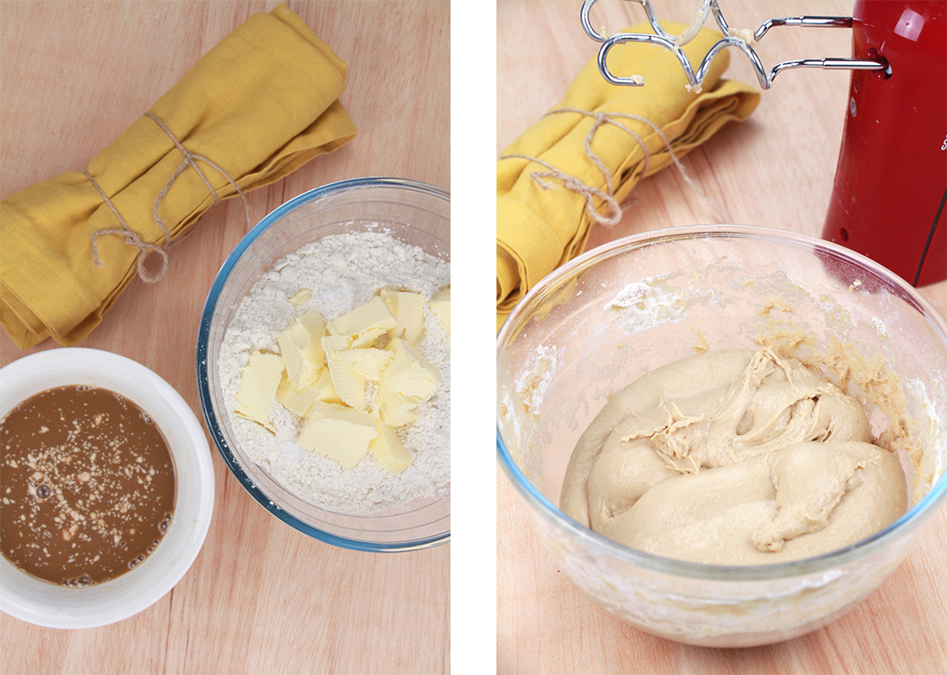 Empezaremos calentando la leche, sin que llegue a hervir. Solo debe estar tibia. La verteremos en un bol en el que tengamos la panela y la levadura desmenuzada. Removeremos bien y enérgicamente hasta que consigamos que ambos ingredientes se disuelvan.